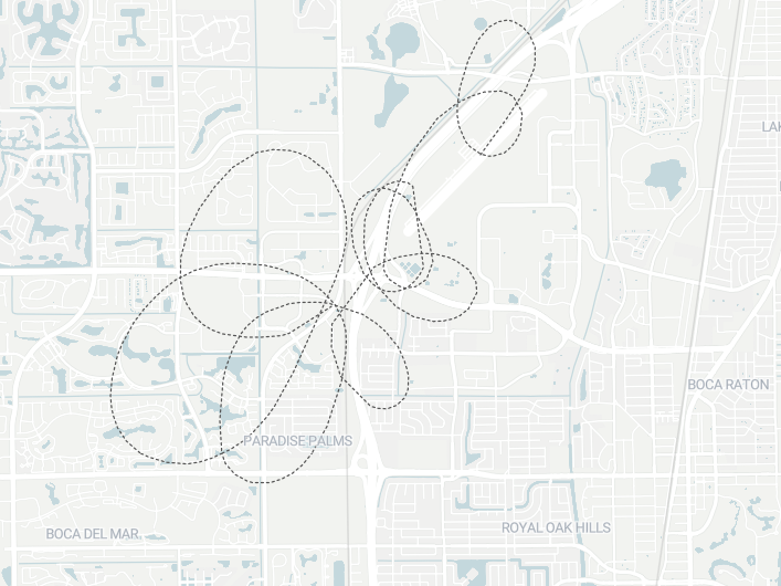 Các viên chức địa phương cho biết phi cơ đã rơi ngay phía tây nam của phi trường Boca Raton. Cảnh quay trên không do WTVJ, chi nhánh của NBC, chia sẻ từ hiện trường vụ tai nạn dường như cho thấy các mảnh vỡ nằm rải rác trên một con đường ngay phía tây của Xa lộ Liên tiểu bang 95. Các mảnh vỡ cũng có thể được nhìn thấy trên một cặp đường ray xe lửa gần đó.