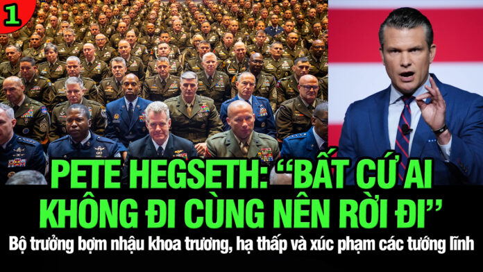 Sign in Welcome! Log into your account your username your password Forgot your password? Get help Password recovery Recover your password your email A password will be e-mailed to you. VL1-01.10: Pete Hegseth: “Bất cứ ai không đi cùng nên rời đi” October 1, 2025 0 3848 Share FacebookTwitterEmailPrintTelegramViberCopy URL TagsChiến tranh thương mạida trắng thượng đẳngDonald Trumpđảng Cộng HòaELON MUSKngười nhập cưthuế quanTòa án Tối caotrục xuấtTruyền Hình Việt Nam 1việt linh Previous articleTòa ra lệnh “BỊT MÕM” youtubers bị kiện, không đề cập đến Nguyễn Phương Hằng, tới phiên tòa tới!Next articleVL2-01.10: Donald Trump: Quân đội Hoa Kỳ sẽ “chiến đấu với kẻ thù từ bên trong” BÀI VIẾT LIÊN QUAN VL2-05.12: Các nữ tướng Cộng hòa công khai nổi loạn chống Johnson? December 5, 2025 VL1-05.12: Ai nói mặc ai, tớ già rồi, mệt thì ngủ một chút mà? December 5, 2025 Du tăng Thích Minh Tánh: 41 năm xa quê hương Việt Nam! December 4, 2025 Truyền thông Mỹ: Trump “quyền lợi” là xong. Nhiệm kỳ Trump dường như đã kết thúc December 4, 2025 VL2-04.12: Trump tiến cử Mark Kelly cho ứng cử viên năm 2028? December 4, 2025 VL1-04.12: Số phận của Donald Trump phụ thuộc vào điều này? December 4, 2025 MỚI CẬP NHẬT VL2-05.12: Các nữ tướng Cộng hòa công khai nổi loạn chống Johnson? December 5, 2025 VL1-05.12: Ai nói mặc ai, tớ già rồi, mệt thì ngủ một chút mà? December 5, 2025 Putin nói có những điểm ông không thể chấp nhận trong đề xuất của Mỹ nhằm chấm dứt chiến tranh Nga – Ukraine December 4, 2025 Chủ tịch Hạ viện Johnson kêu gọi đảng Cộng hòa giữ kín bất đồng sau một tuần đầy sóng gió December 4, 2025 Du tăng Thích Minh Tánh: 41 năm xa quê hương Việt Nam! December 4, 2025 Load more