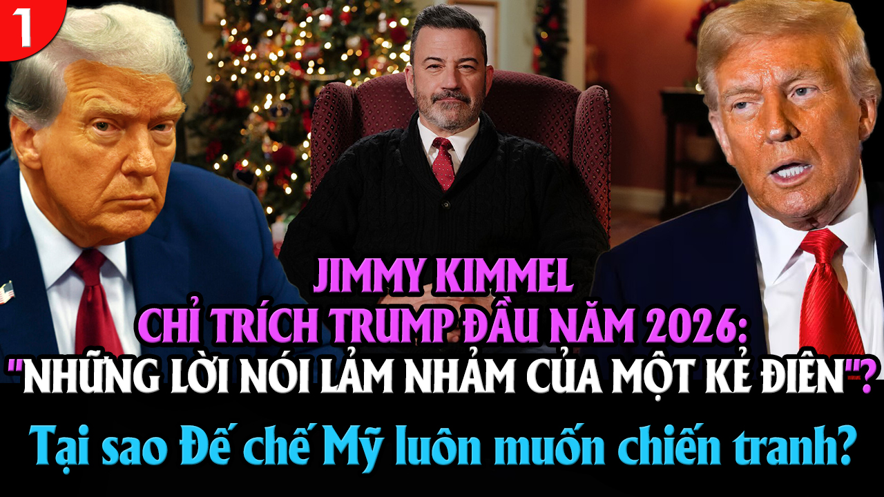 Sign in Welcome! Log into your account your username your password Forgot your password? Get help Password recovery Recover your password your email A password will be e-mailed to you. VL1-06.01: Jimmy Kimmel chỉ trích Trump đầu năm 2026: “Những lời nói lảm nhảm của một kẻ điên”? January 6, 2026 0 4779 Share FacebookTwitterEmailPrintTelegramViberCopy URL TagsChiến tranh thương mạida trắng thượng đẳngDonald Trumpđảng Cộng HòaELON MUSKngười nhập cưthuế quanTòa án Tối caotrục xuấtTruyền Hình Việt Nam 1việt linh Previous articleMột lời “cảm ơn” hiếm hoi dành cho truyền thông từ chính quyền TrumpNext articleVL2-06.01: “Một kẻ bệnh hoạn” muốn tấn công Greenland, Colombia, Cuba và Mexico? BÀI VIẾT LIÊN QUAN VL2-07.01: Trum thừa nhận: “Người Mỹ đã trở thành cướp biển Somalia công nghệ cao!” January 7, 2026 VL1-07.01: Trump gây sốc khi đề xuất Quốc hội hủy bỏ cuộc bầu cử giữa nhiệm kỳ January 7, 2026 Mỹ đột kích bắt cóc Tổng thống Madura. Tình hình Việt Nam hiện nay January 6, 2026 Phe đối lập Maduro hy vọng gì ở Trump? Bài học thân Trump January 6, 2026 VL2-06.01: “Một kẻ bệnh hoạn” muốn tấn công Greenland, Colombia, Cuba và Mexico? January 6, 2026 Walk for Peace – Những Bước Chân Tỉnh Thức Trên Con Đường Hòa Bình January 5, 2026 MỚI CẬP NHẬT Trump đưa dầu mỏ trở thành trọng tâm trong chiến lược tiếp quản Venezuela January 7, 2026 VL2-07.01: Trum thừa nhận: “Người Mỹ đã trở thành cướp biển Somalia công nghệ cao!” January 7, 2026 VL1-07.01: Trump gây sốc khi đề xuất Quốc hội hủy bỏ cuộc bầu cử giữa nhiệm kỳ January 7, 2026 Mỹ đột kích bắt cóc Tổng thống Madura. Tình hình Việt Nam hiện nay January 6, 2026 Những người bạo loạn ngày 6/1 được ân xá xuống đường, ca ngợi Trump nhưng đòi hỏi nhiều hơn từ chính quyền January 6, 2026 Load more