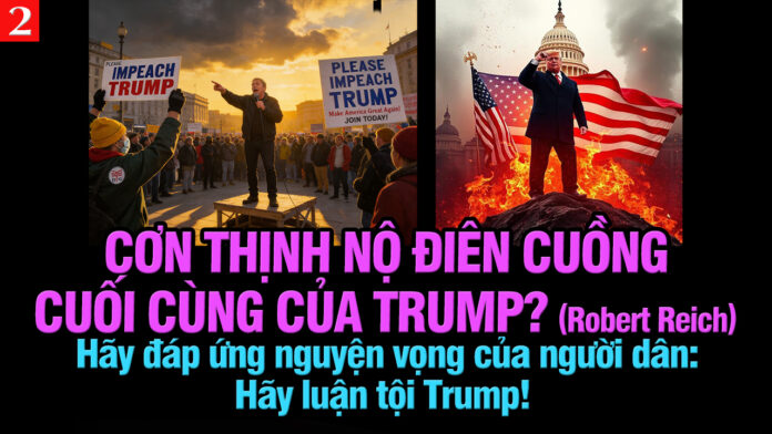 Sign in Welcome! Log into your account your username your password Forgot your password? Get help Password recovery Recover your password your email A password will be e-mailed to you. VL2-19.04: Cơn thịnh nộ điên cuồng cuối cùng của Trump? April 19, 2026 0 3420 Share FacebookTwitterEmailPrintTelegramViberCopy URL Tagschính quyền Trumpchính sách thuế quanchính trị MỹDonald Trumpđảng Cộng HòaMAGAnền Dân chủ Hoa KỳTruyền Hình Việt Nam 1việt linh Previous articleVL1-19.04: Làm thế nào để loại bỏ một tổng thống mắc bệnh tâm thần?Next articleIRAN TỪ CHỐI ĐÀM PHÁN VÒNG 2 VỚI MỸ VÀO THỨ HAI 20/4 BÀI VIẾT LIÊN QUAN Ai đã làm Mỹ ở thế “kèo dưới “. Ba nữ tướng của TT Trump nhận “cáo phó” April 22, 2026 5 điều cần chú ý trong cuộc tranh luận giữa các ứng cử viên thống đốc California April 22, 2026 Spirit Airlines đàm phán thỏa thuận cứu trợ với chính quyền Trump trước nguy cơ phá sản April 22, 2026 3 ứng cử viên chính trị bị Kalshi đình chỉ vì tham gia cá cược vào cuộc bầu cử của chính họ April 22, 2026 Florida mở cuộc điều tra hình sự đối với ChatGPT liên quan đến vụ xả súng tại Đại học Florida State April 22, 2026 TRUNG QUỐC: CHA MẸ ẢO – LIỀU THUỐC HAY BẪY CÔ ĐƠN April 22, 2026 MỚI CẬP NHẬT Cảnh báo: 1/5 người dân Mỹ có nguy cơ nhiễm độc tố nguy hiểm trong nước máy April 23, 2026 Lebanon lên án Israel phá hủy nhà cửa tại các khu vực bị chiếm đóng sau lệnh ngừng bắn April 23, 2026 Kẻ trộm túi xách của bà Kristi Noem bị tuyên án 3 năm tù April 23, 2026 Vua Charles III từ chối gặp gỡ các nạn nhân của Epstein trong chuyến thăm cấp nhà nước tới Mỹ April 22, 2026 Ai đã làm Mỹ ở thế “kèo dưới “. Ba nữ tướng của TT Trump nhận “cáo phó” April 22, 2026 Load more
