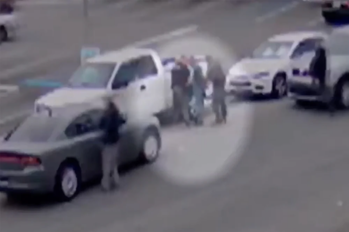 Video từ camera an ninh ghi lại cảnh bắt giữ vào khoảng 7:45 sáng. Người đàn ông được nhìn thấy mặc bộ đồ màu xanh, đi bộ đến chiếc xe tải của gia đình thì bị một số đặc vụ bao vây.