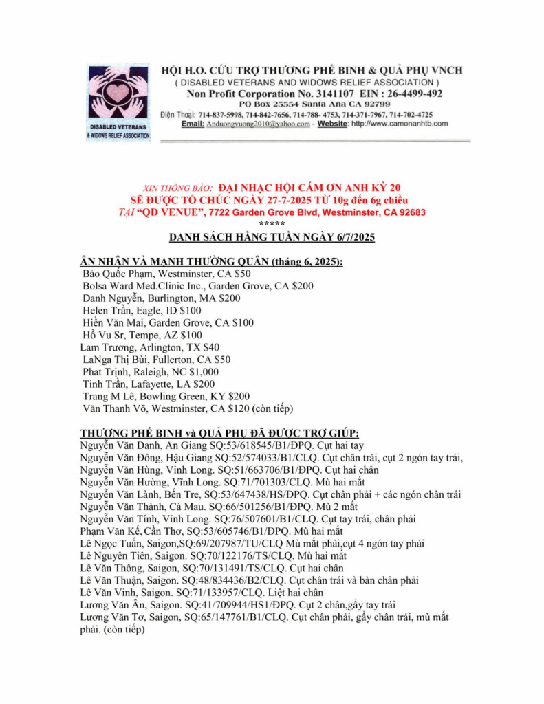 Sign in Welcome! Log into your account your username your password Forgot your password? Get help Password recovery Recover your password your email A password will be e-mailed to you. danh sách ân nhân gởi tiền cho Hội HO cứu trợ Thương Phế Binh hằng tuần – 6/7/2025 July 8, 2025 0 955 Share FacebookTwitterEmailPrintTelegramViberCopy URL Previous articleĐảng Cộng hòa ráo riết “tiếp thị” dự luật khổng lồ ‘big, beautiful bill’ với cử tri trong nướcNext articleDân biểu Cộng hòa đính hôn với phóng viên Fox News Jacqui Heinrich BÀI VIẾT LIÊN QUAN Nhạc sĩ Huyền Anh và Danh ca Phương Hồng Quế nhắc kỷ niệm xưa.. December 13, 2025 TẠI SAO TRUMP MUỐN CHIẾM VENEZUELA SAU KHI THU GIỮ TÀU DẦU? December 13, 2025 Mẹ của cháu trai Karoline Leavitt kể về trải nghiệm bị ICE bắt nhốt! December 13, 2025 Cựu trợ lý của Pence dự đoán bầu cử giữa kỳ 2026 sẽ “thiên về Đảng Dân chủ” December 13, 2025 Kế hoạch của Trump là gì nếu tòa án bác bỏ thuế khẩn cấp? December 13, 2025 Những tin đồn thượng tầng lãnh đạo CSVN December 13, 2025 MỚI CẬP NHẬT VL2-14.12: Nội các tình dục của Trump December 14, 2025 VL1-14.12: “Tôi không biết!” gì về Epstein – “Tôi chưa bao giờ thấy!” những hình ảnh chết tiệt này December 14, 2025 Nhạc sĩ Huyền Anh và Danh ca Phương Hồng Quế nhắc kỷ niệm xưa.. December 13, 2025 TẠI SAO TRUMP MUỐN CHIẾM VENEZUELA SAU KHI THU GIỮ TÀU DẦU? December 13, 2025 Mẹ của cháu trai Karoline Leavitt kể về trải nghiệm bị ICE bắt nhốt! December 13, 2025 Load more