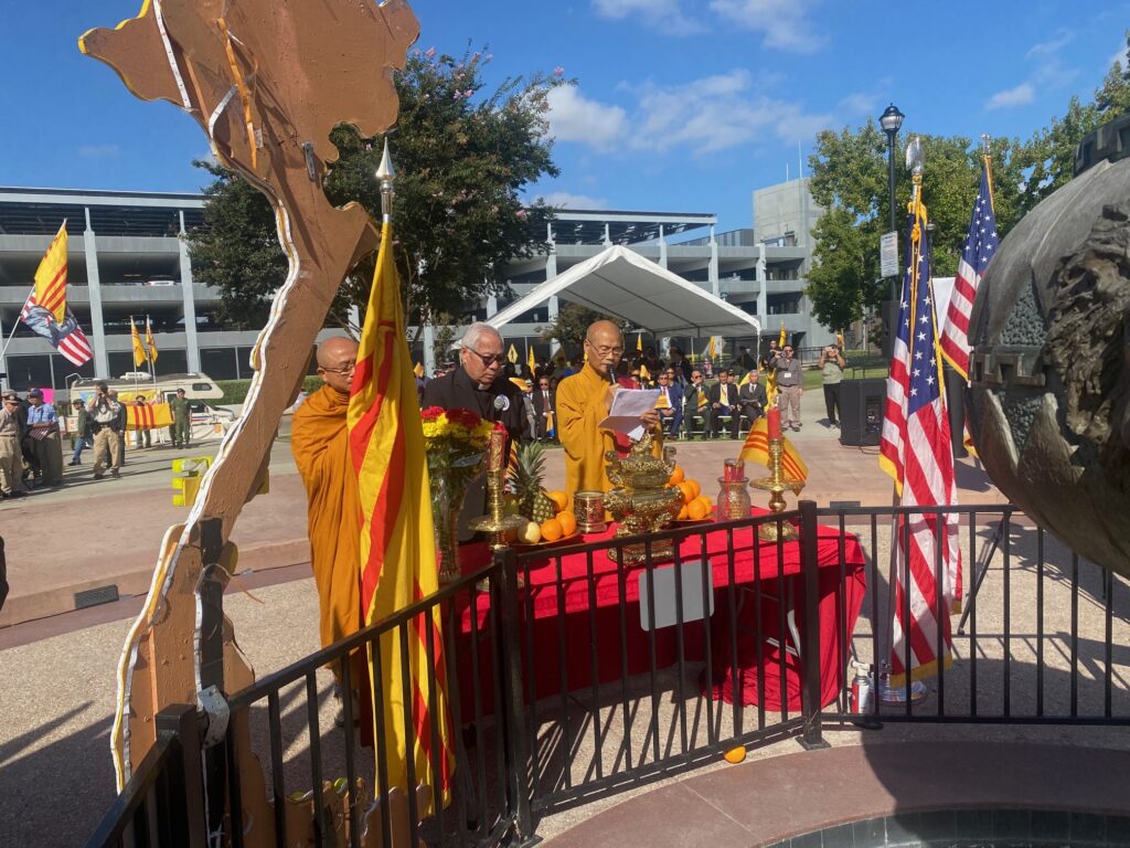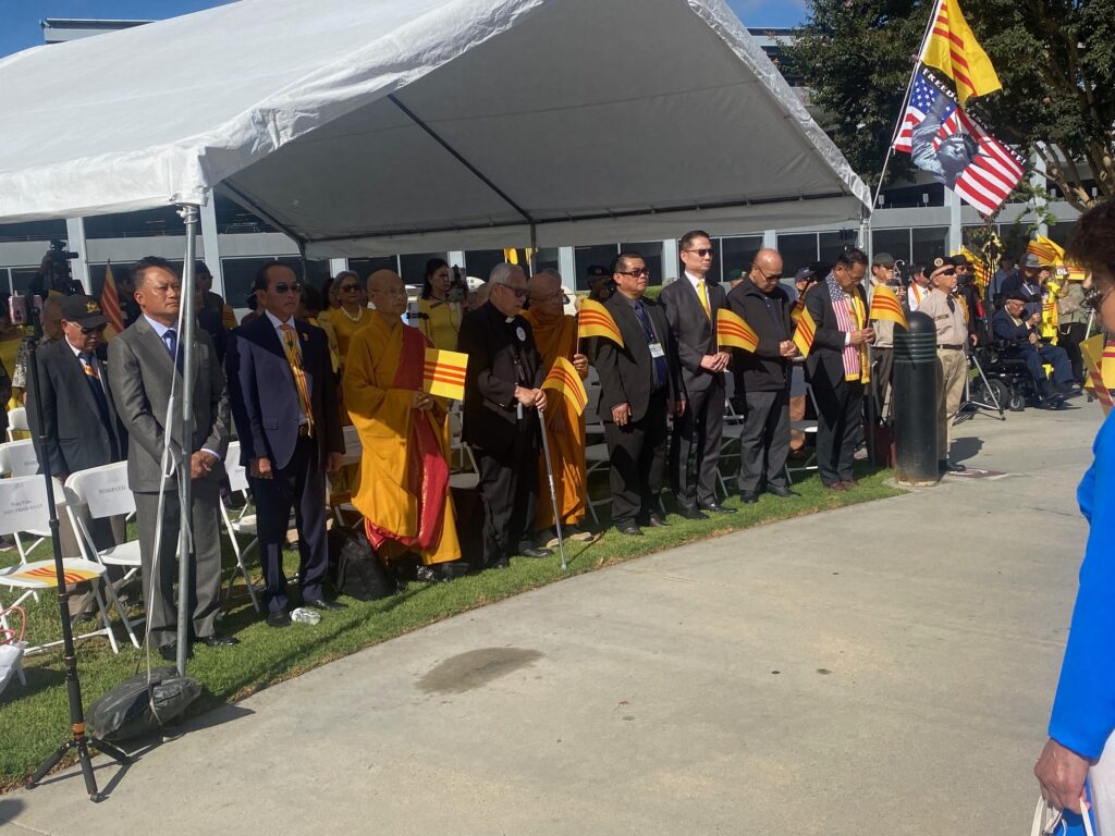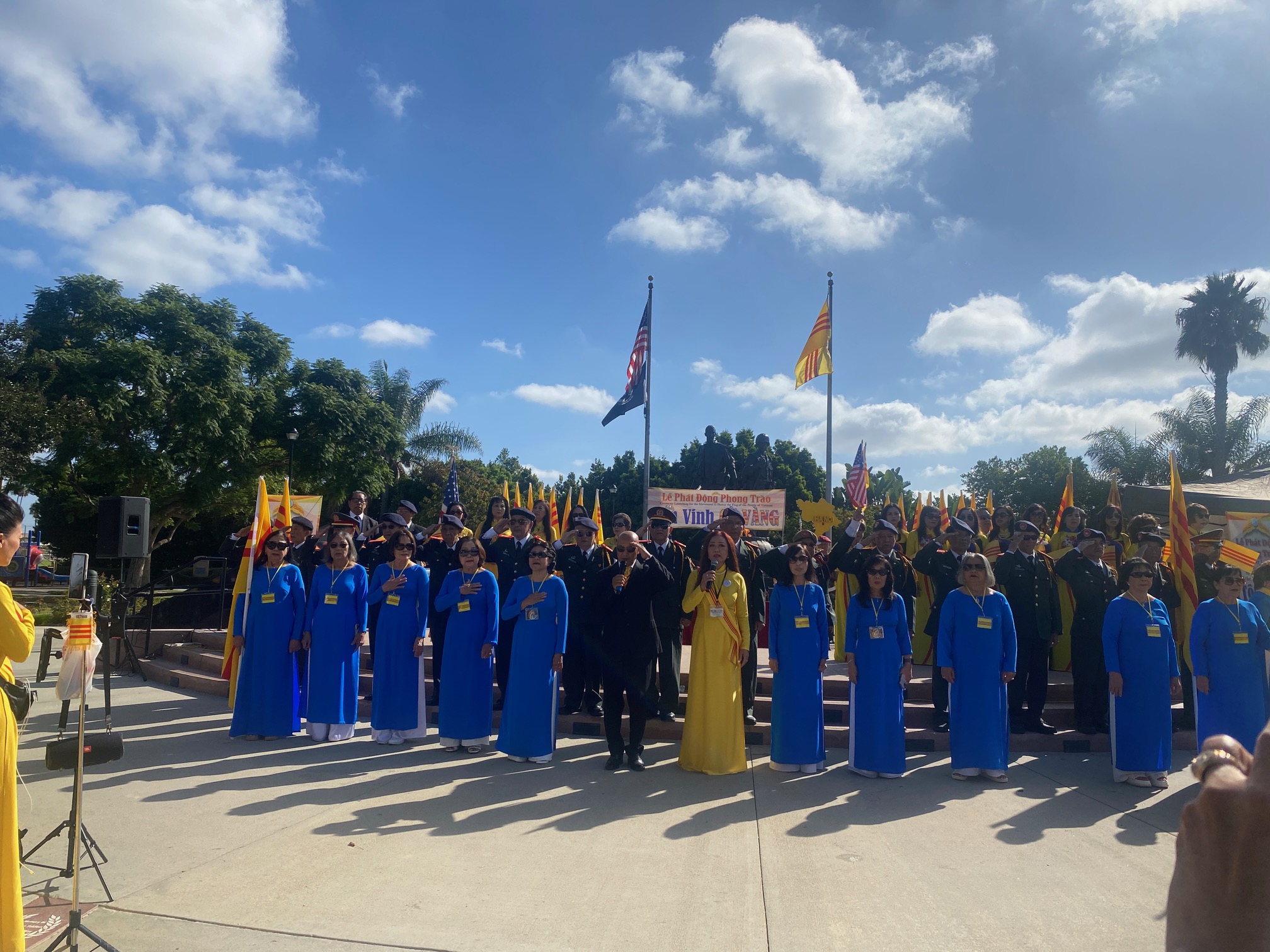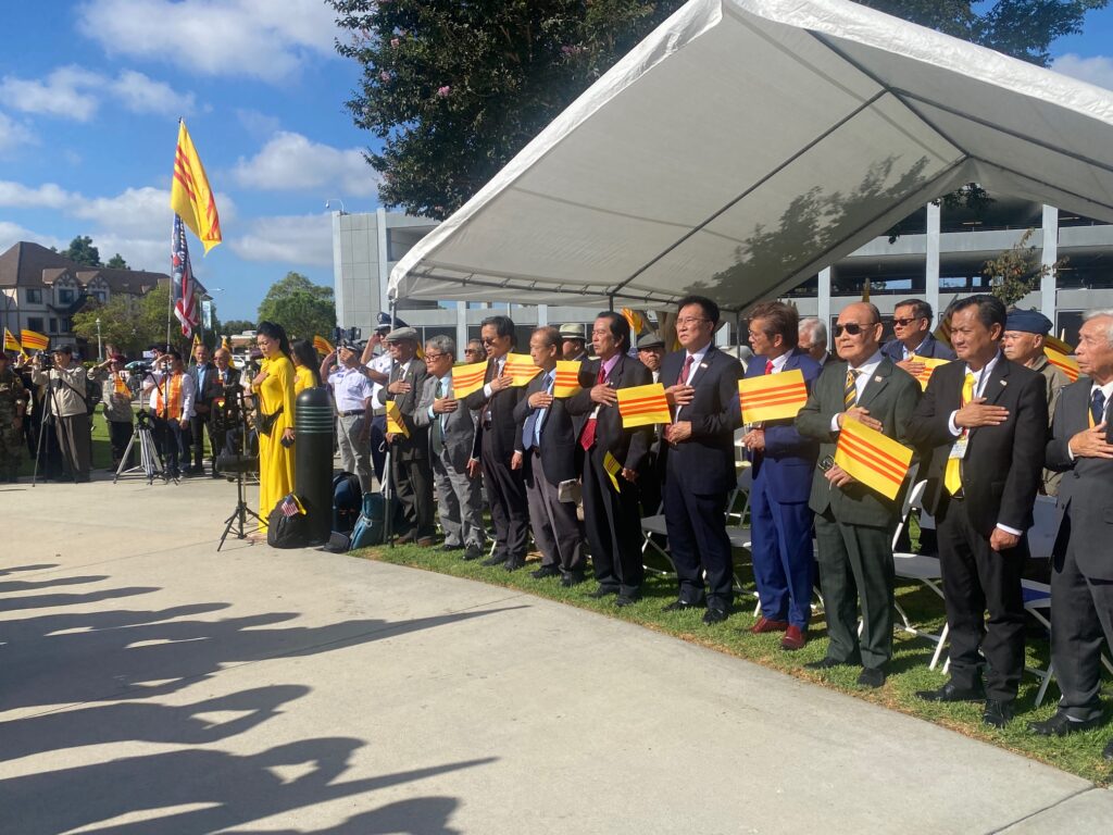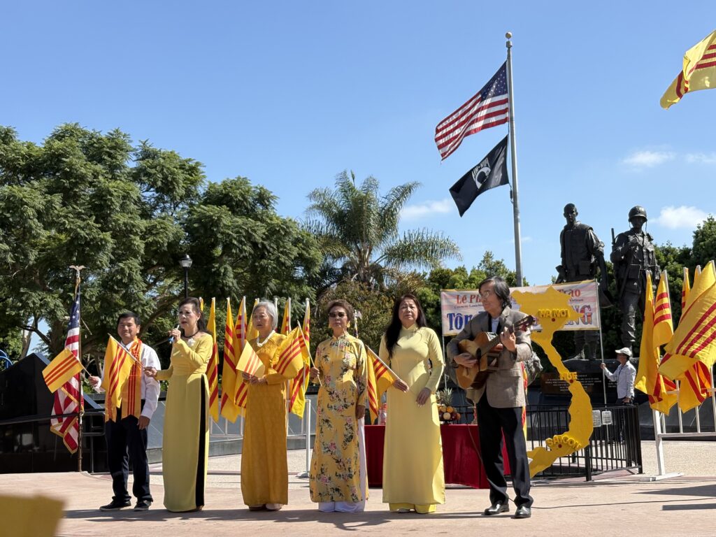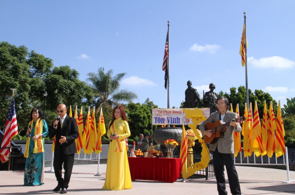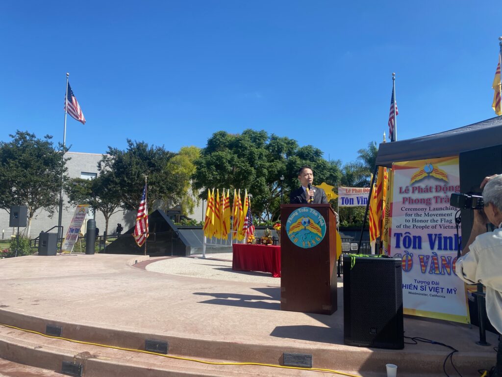 Sáng Chủ Nhật 5-10-2025, mấy trăm đồng hương tề tựu tại Tượng Đài Chiến Sĩ Việt Mỹ thành phố Westminster Quận Cam, dự buổi lễ Phát Động Phong Trào Tôn Vinh Cờ Vàng do nhiều đoàn thể tổ chức Trong danh sách các đoàn thể tổ chức gồm có Hòa Thượng Thích Minh Tuyên – Giáo Hội Phật Giáo Tăng Già Khất Sĩ Thế Giới, Linh Mục Nguyễn Hữu Lễ – Phong Trào Quốc Dân Đòi Trả Tên Sài Gòn, Đại Việt Quốc Dân Đảng, Việt Nam Quốc Dân Đảng, Đảng Nhân Bản Xã Hội, Họp Mặt Dân Chủ, Lực Lượng Dân Tộc Cứu Nguy Tổ Quốc, Mạng Lưới Nhân Quyền Việt Nam, Phong Trào Giáo Dân Việt Nam Hải Ngoại.