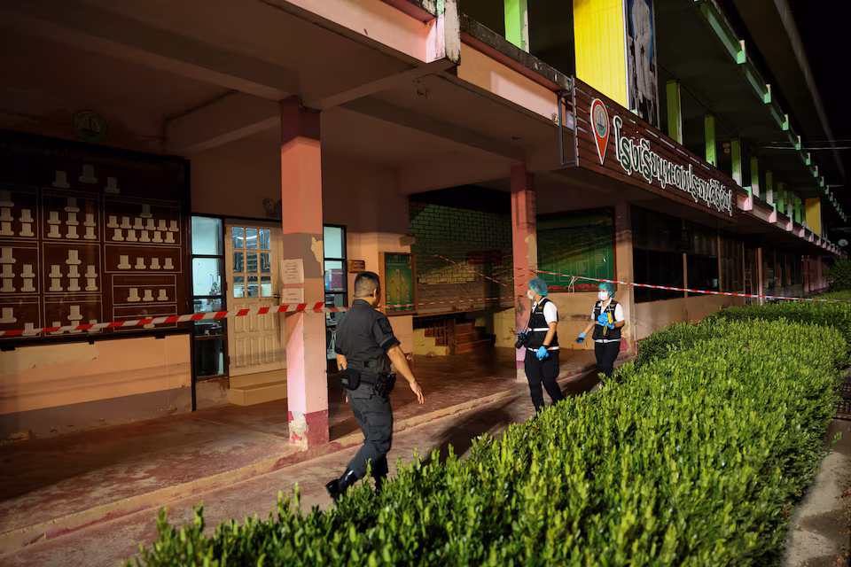 Nhà chức trách cho hay, một thiếu niên 17 tuổi đã sử dụng khẩu súng lấy trộm từ một cảnh sát để bắn cô giáo — được xác định là Sasiphat Sinsamosorn — tại Trường Patongprathankiriwat School ở Songkhla vào ngày thứ Tư, trước khi bị cảnh sát khống chế. Một nữ sinh khác cũng trúng đạn; tình trạng của em hiện chưa được công bố.