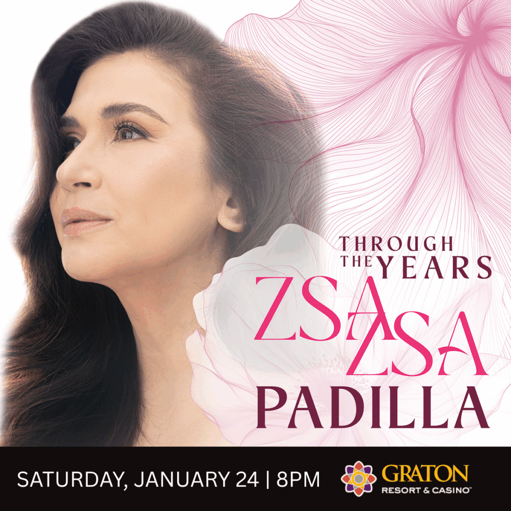 Zsa Zsa Padilla mang đến Chuyến Lưu Diễn Kỷ Niệm 40 Năm của mình đến Graton Resort & Casino vào Thứ Bảy, 24 tháng Giêng lúc 8PM! Sau bốn thập kỷ hòa mình vào nhiều thể loại âm nhạc khác nhau như một nghệ sĩ đa tài, cô kỷ niệm hành trình của mình bằng một buổi biểu diễn đầy cảm xúc với những ca khúc đã trở thành nhạc nền của cuộc sống chúng ta.