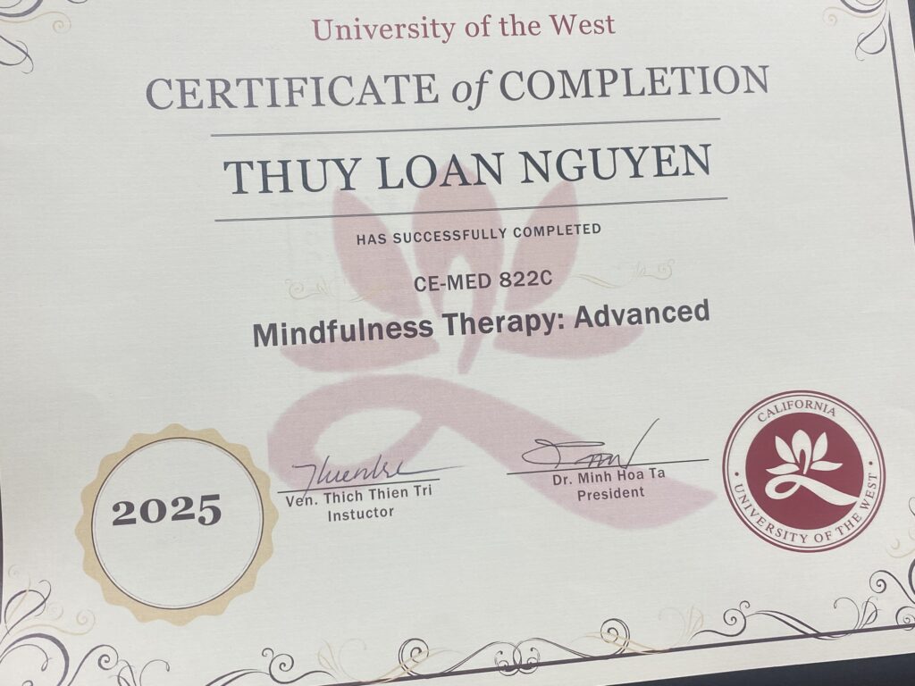 Tối chủ nhật 20-7-2025, tại phòng sinh hoạt của University of The West – Đại học Phật Giáo ở thành phố Rosemead, California, có buổi lễ trao bằng các học viên tốt nghiệp khóa Thiền căn bản và thực nghiệm do Thượng tọa Thích Thiện Trí giảng dạy, với sự tham dự của các học viên và quan khách.