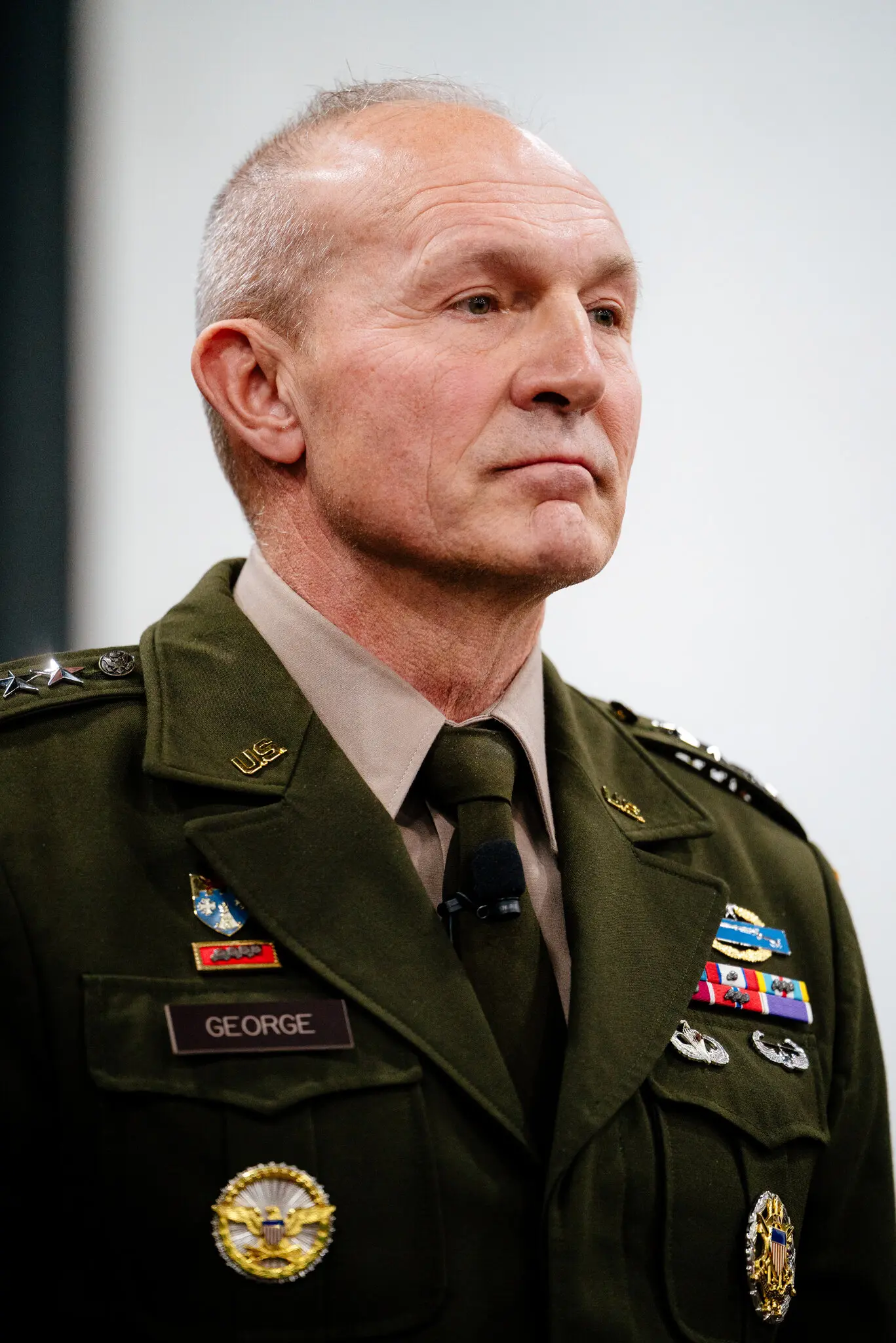 Tướng George từng tham gia nhiều nhiệm kỳ tác chiến tại Iraq và Afghanistan, nơi ông gây dựng danh tiếng là một nhà lãnh đạo tác chiến sáng tạo. Tại Afghanistan, ông đã rút quân khỏi các thung lũng xa xôi — nơi diễn ra những trận chiến đẫm máu nhưng vô nghĩa — để tập trung bảo vệ các trung tâm dân cư. Thay vì chỉ truy lùng Taliban, ông yêu cầu binh sĩ nhắm vào và loại bỏ các quan chức chính phủ Afghanistan tham nhũng đang đàn áp người dân.