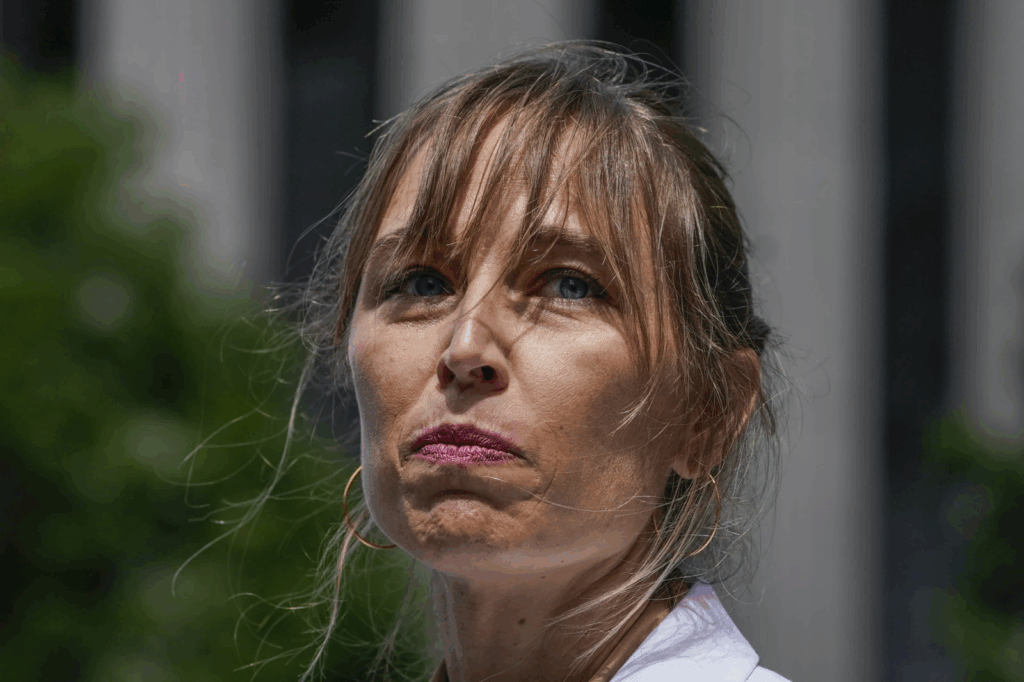 ẢNH TƯ LIỆU – Annie Farmer, một trong bốn người tố cáo đã làm chứng chống lại Ghislaine Maxwell tại phiên tòa, nói chuyện với các thành viên truyền thông cùng luật sư của mình, Sigrid McCawley, bên ngoài tòa án liên bang ngày 28 tháng 6 năm 2022, tại New York. (Ảnh AP/John Minchillo)