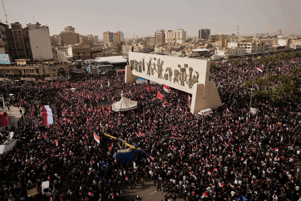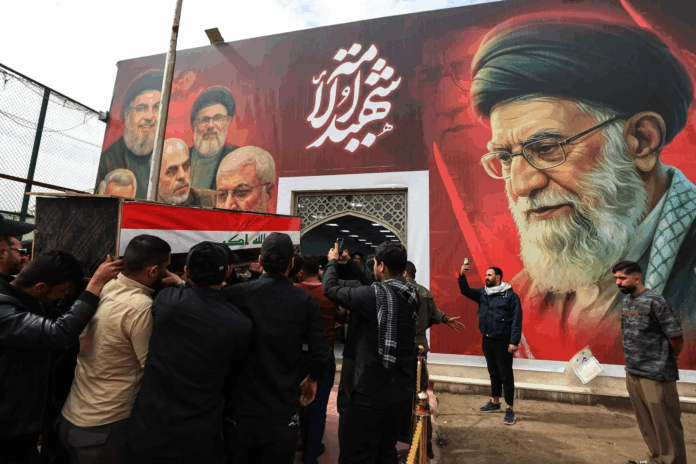 Những người theo Muqtada al-Sadr, một giáo sĩ Hồi giáo Shia có ảnh hưởng ở Iraq, tham gia cuộc biểu tình ở Baghdad hồi đầu tháng này phản đối các cuộc tấn công của Mỹ và Israel vào Iran.Tín dụng…Hadi Mizban/Associated Press