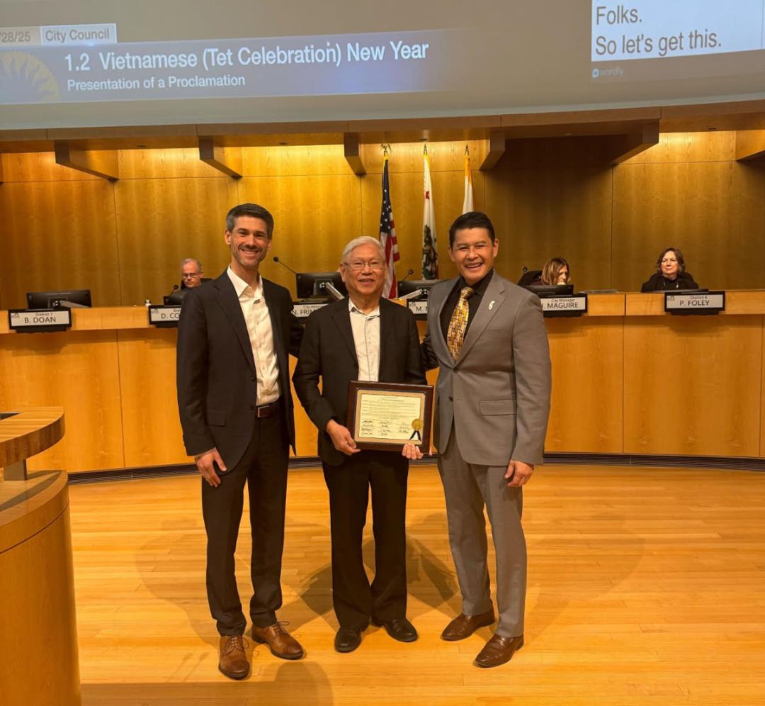 CALITODAY (06/2/2025): Hôm thứ Ba 04/2, Thị Trưởng San Jose Matt Mahan cùng Nghị Viên khu vực 7 Biên Đoàn đã mời Tổng Thư Ký Liên Hội Cựu Quân Nhân Bắc California là Hải Quân Thiếu Úy Lê Thái Phúc đến tòa thị chánh của Thành Phố San Jose để nhận bằng tưởng lục.nhân dịp chào mừng Tết Nguyên Đán năm Ất Tỵ 2025.