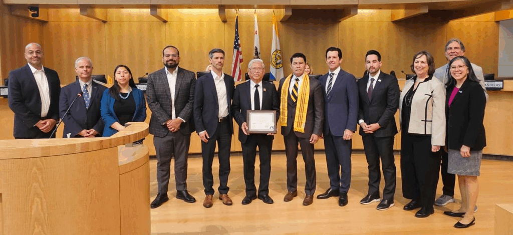 Hôm qua, Hội Đồng Thành Phố San Jose có buổi tri ân cộng đồng người Việt đã đóng góp rất nhiều cho thành Phố San Jose sau ngày 30/4/1975. Chúng tôi mời Tổng Thư Ký Lê Thái Phúc của Liên Hội Cựu Quân Nhân Bắc Cali nhận bằng tưởng lục để tri ân sự đóng góp của cộng đồng người Việt cho Thành Phố San Jose.”