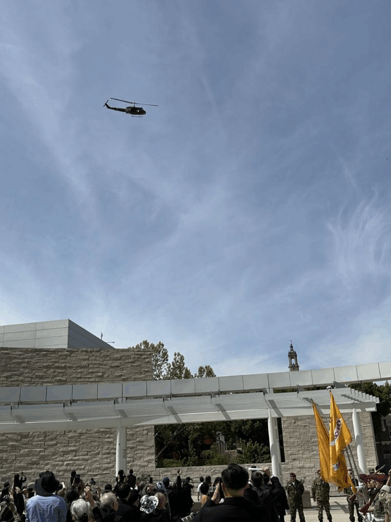Chiếc trực thăng bay trên bầu trời ngay tại chỗ buổi lễ tưởng niệm đang diễn ra, đã làm cho hàng trăm người tham dự xúc động rơi nước mắt tưởng nhớ đến chế độ VNCH đã đem tự do cho người dân miền Nam Việt Nam nhưng bị đồng minh phản bội bỏ rơi, bị bức tử.