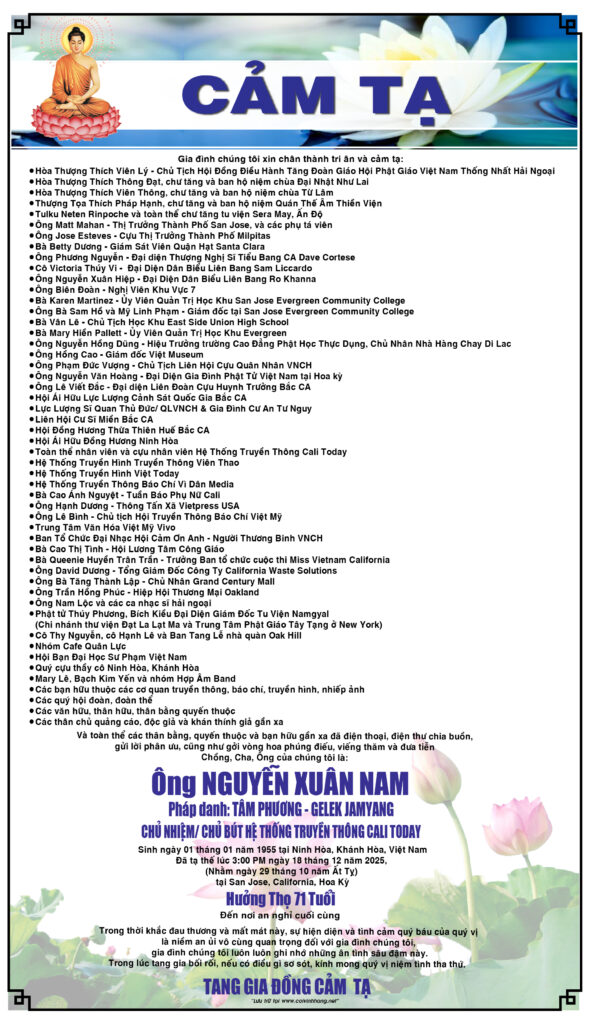Over the past several days, our family has been deeply moved by the outpouring of love and compassion shown during the funeral services of the late journalist Nguyen Xuan Nam. The solemnity and completeness of the ceremonies were made possible by your presence, your prayers, and your heartfelt condolences.