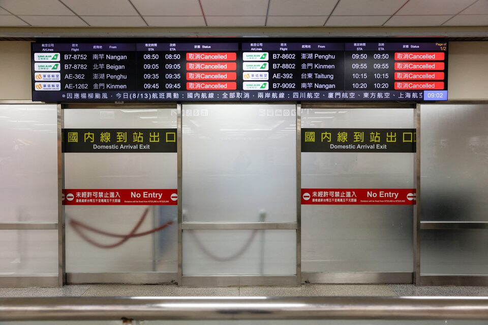 TAIPEI, ngày 13 tháng 8 (Reuters) – Một vùng rộng lớn ở miền Nam và miền Đông Đài Loan đã ngừng hoạt động hôm thứ Tư, hàng trăm chuyến bay bị hủy bỏ trước khi bão Podul đổ bộ vào cuối ngày, đồng thời hàng nghìn người đã được sơ tán.