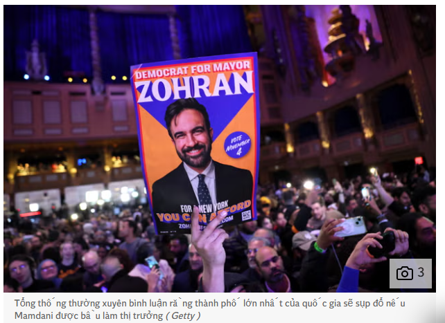 đảng viên Dân chủ Zohran Mamdani đã giành chiến thắng trong cuộc đua giành chức Thị trưởng New York , một cuộc cạnh tranh quyết liệt với cựu thống đốc tiểu bang Andrew Cuomo được Trump hậu thuẫn.