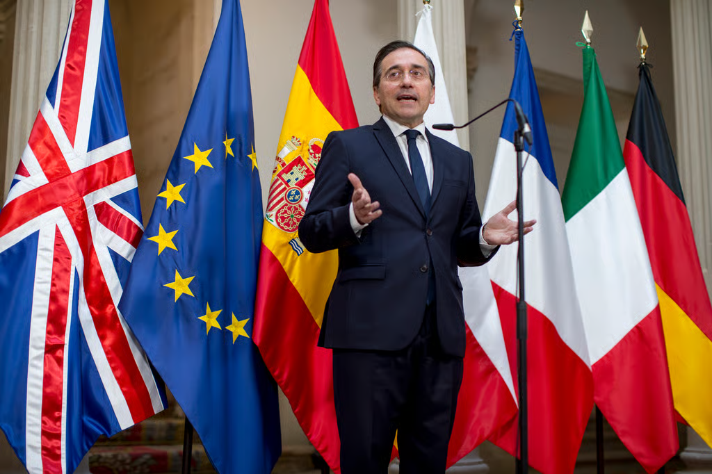 Ngoại trưởng Tây Ban Nha José Luis Albares chỉ trích mạnh mẽ ông Merz vì đã không đứng lên bảo vệ một thành viên EU khác. | Luis Soto/SOPA Images/LightRocket via Getty Images