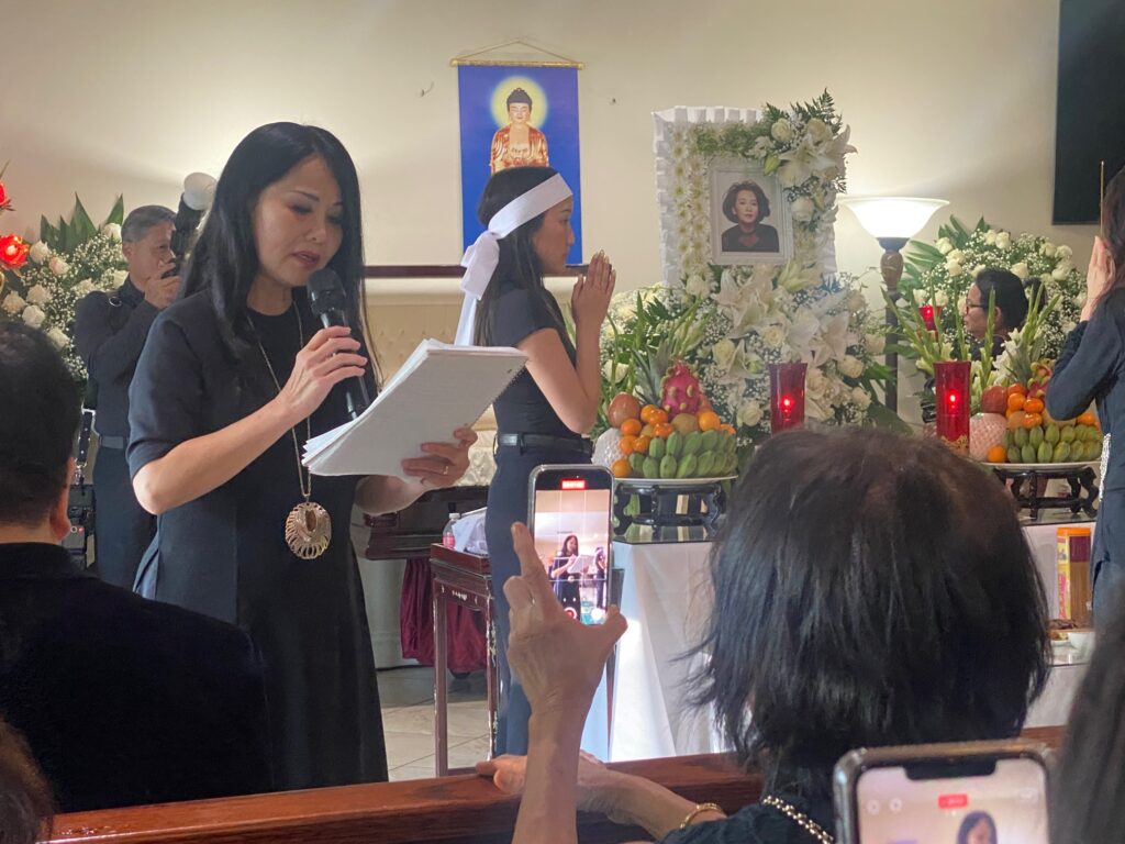 Chị Kiều Anh- chị ruột của cố ca sĩ Kiều Nga; đến từ Houston Texas bày tỏ lòng biết ơn của tang quyến đến với mọi người.