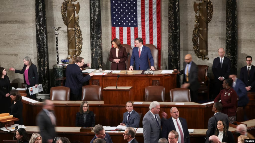 Hôm nay Thứ Hai ngày 06-1-2025, lưỡng viện Quốc Hội Hoa Kỳ gồm Thượng Viện và Hạ Nghị Viện đã họp khoáng đại tại điện Capitol là trụ sở Hạ Viện để kiểm phiếu Đại cử tri (Electoral Votes) bầu cho hai Liên danh ứng cử Tổng Thống Hoa Kỳ ngày 05-11-2024 vừa qua.