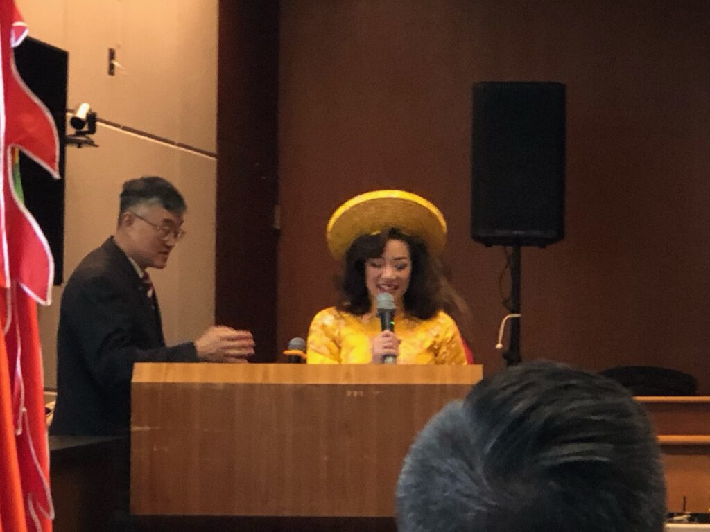 Để Khai mạc buổi tiệc, Ông Phan H. Long, Hội Trưởng, chào mừng quan khách và quý đồng môn Vạn Hạnh. Với giọng nói truyền cảm, nhẹ nhàng pha chút dí dõm, ông đã làm cho buổi tiệc thêm phần ấm áp và gần gủi. Sau đó là buổi ăn trưa, ca hát, xổ số có thưởng. Những nhạc phẩm Xuân được trình bày. Mở đầu là nhạc phẩm Mùa Xuân Miền Nam, tam ca; gợi nhớ một thuở Miền Nam thân yêu còn thanh bình. Tiếp theo là đơn ca, song ca…tất cả được chọn lọc . Nhạc nhẹ, lời ca ý nghĩa, giọng ca ngọt ngào làm cho người nghe thấm thía một thời sinh viên trẻ trung, đầy sức sống và nhiều lý tưởng . Đặc biệt có một màn trình diễn, múa hát theo thể loại ca trù (cổ nhạc Bắc Phần), làm tăng thêm màu sắc cho cuộc họp mặt.