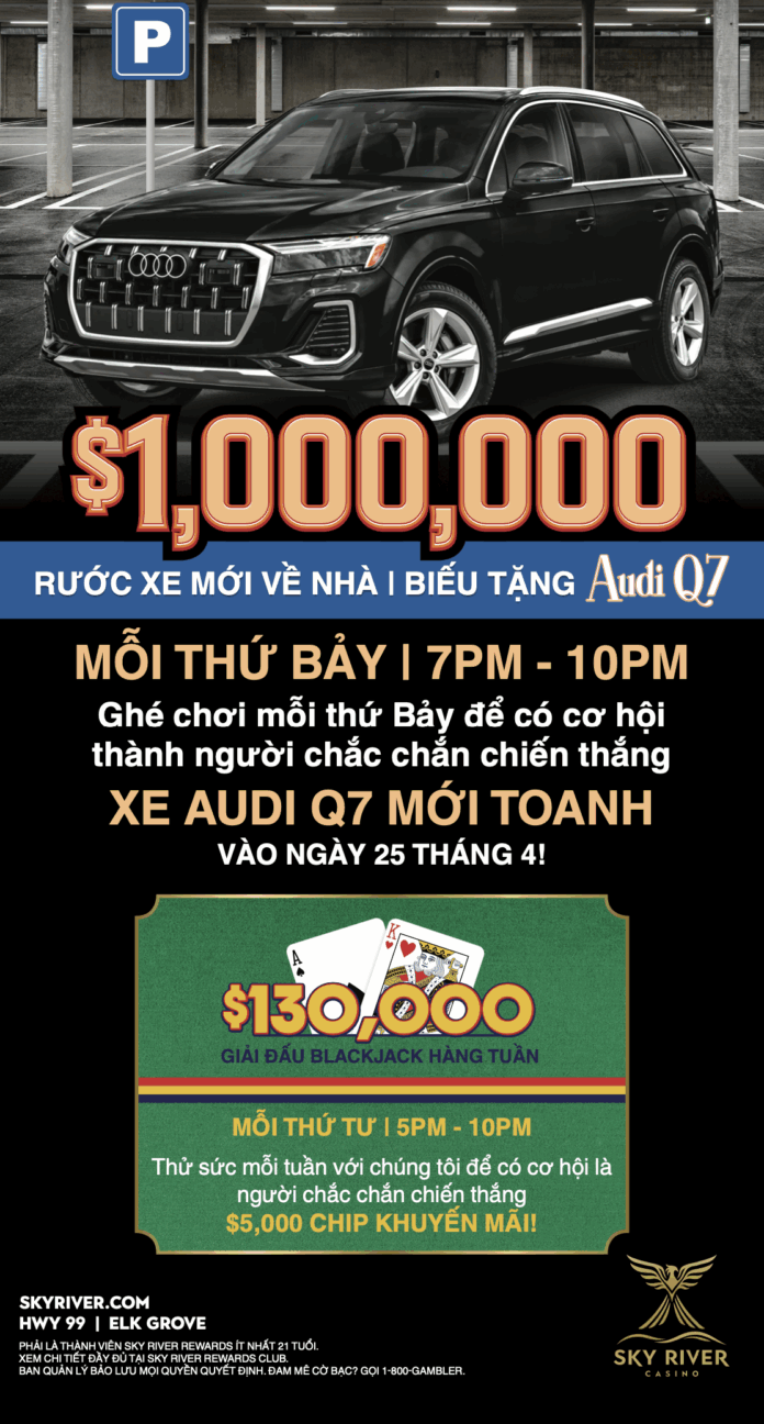Elk Grove, California – Sky River Casino bước vào tháng 4 với đà tăng trưởng mạnh mẽ giữa mùa xuân, nổi bật với Chương Trình Biếu Tặng Xe Audi Q7 trị giá $1,000,000 đang diễn ra, sự trở lại của Giải Đấu Blackjack Hàng Tuần trị giá $130,000, cùng dịp kỷ niệm tổng số tiền thưởng Jackpot Lũy Tiến bài bàn vượt mốc $1 triệu trong tháng 02.