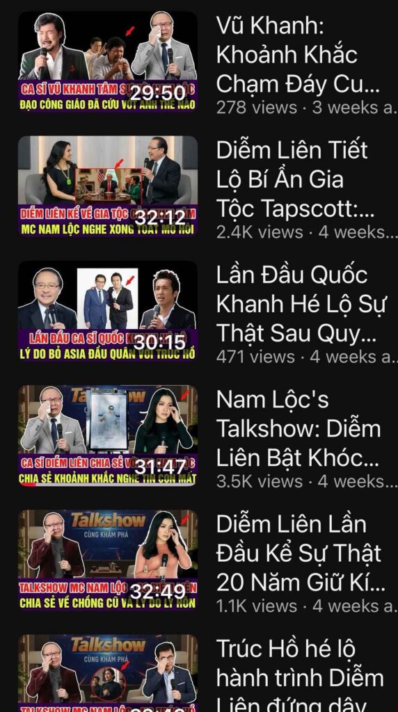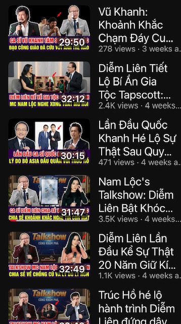 Liên tục trong thời gian gần đây, rất đông quý vị khán thính giả cũng như thân hữu đã hỏi thăm, đồng thời chuyển đến cho tôi nhiều video trên YouTube với các chủ đề khác nhau, thí dụ như: MC Nam Lộc phỏng vấn đại tá Hùng Cao, vợ chồng nhạc sĩ Trúc Hồ, nữ ca sĩ Diễm Liên, O Sen Ngọc Mai, Hồ Hoàng Yến, Quốc Khanh… cùng một số người khác. Ngoài ra họ còn phổ biến nhiều tin tức thất thiệt như: tôi đã về Việt Nam, hoặc có những sự xung đột với bạn hữu, hay rạn nứt trong gia đình, vân vân và vân vân.
