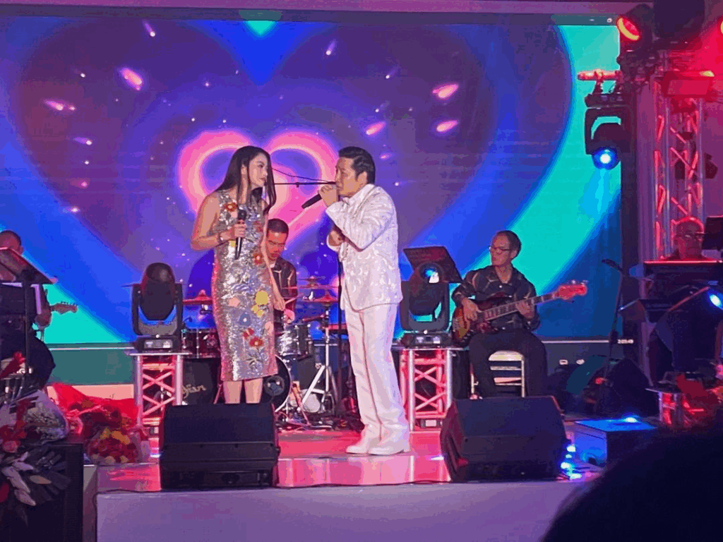 Ông bà Huỳnh Thi-Tô Ngọc Thủy- giám đốc Trung Tâm Thúy Nga; nhạc sĩ Trúc Hồ- Diệu Quyên giám đốc âm nhạc trung tâm Asia lên sân khấu chúc mừng ca sĩ Thế Sơn.