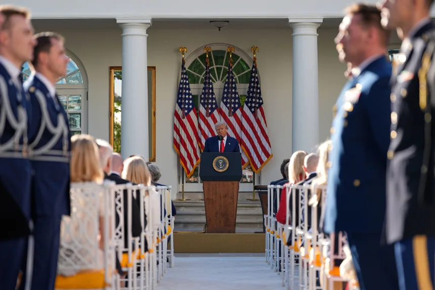 Tổng thống Donald Trump hôm thứ Ba đã truy tặng Huân chương Tự do của Tổng thống cho nhà hoạt động bảo thủ Charlie Kirk, người bị ám sát hồi tháng 9, gọi ông là “một anh hùng thực sự của nước Mỹ.”