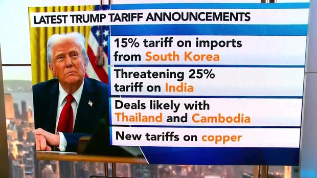 Tổng thống Trump đã công bố các thỏa thuận thương mại với Liên minh châu Âu, Vương quốc Anh và năm quốc gia ở châu Á trước thời hạn do ông tự đặt ra là ngày 1 tháng 8, sau đó chính quyền của ông đã đe dọa sẽ áp đặt mức thuế quan mới mạnh tay đối với hàng chục quốc gia trên thế giới.