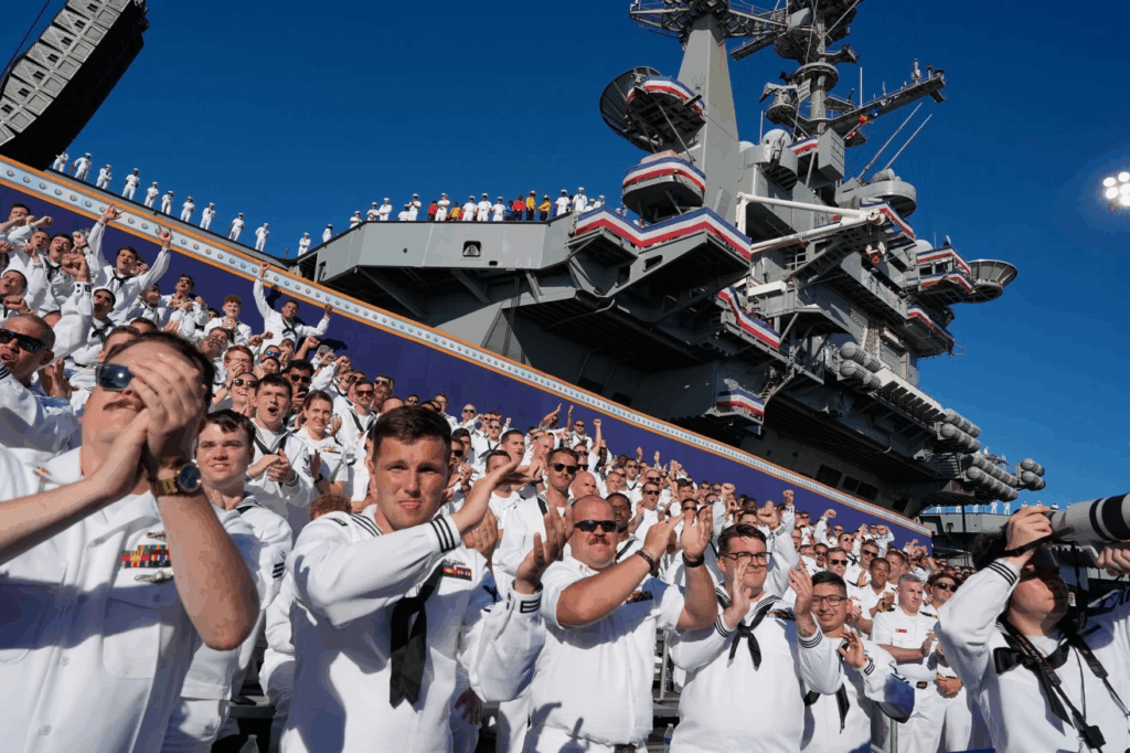 Buổi lễ được tổ chức bên cạnh hai hàng không mẫu hạm USS Kearsarge và USS Harry S. Truman — con tàu vừa trở về Norfolk hồi tháng 6 sau chuyến hải trình dài tại Biển Đỏ chống lại phiến quân Houthi ở Yemen.