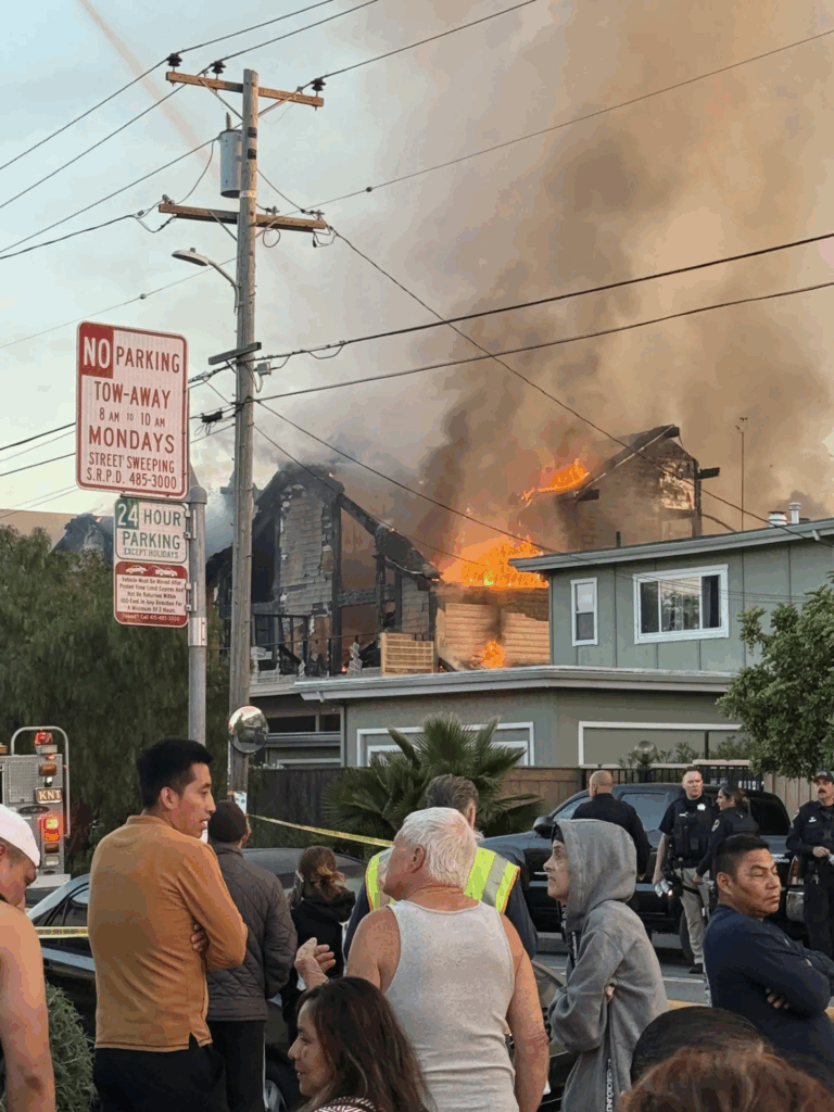 Một vụ hỏa hoạn xảy ra tại số 516 phố Canal ở San Rafael, khiến 55 người phải di dời. Ngày 21 tháng 8 năm 2025.