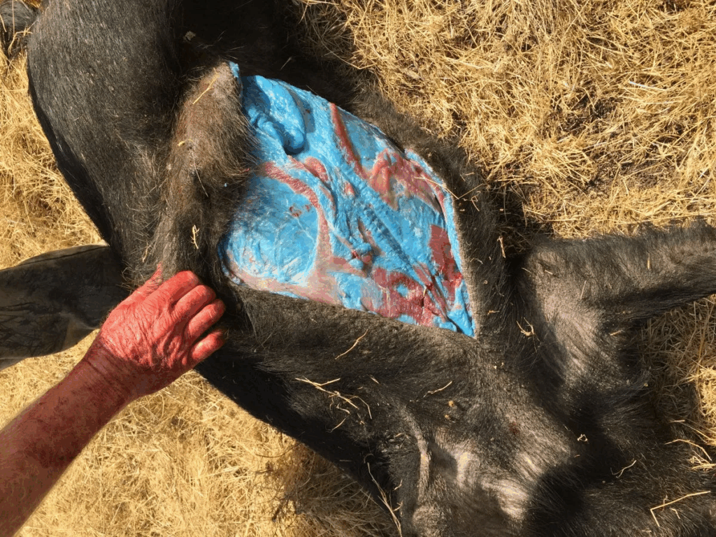 Theo Sở Cá và Động vật hoang dã California (GlendilTEK/imgur), mô và thịt màu xanh có thể là dấu hiệu của việc nuốt phải thuốc diệt chuột, có thể xảy ra khi ăn mồi – thường chứa thuốc nhuộm để nhận dạng chúng là chất độc – hoặc các động vật khác đã ăn phải chất này.
