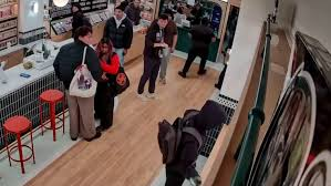 Video an ninh cho thấy các nghi phạm mặc toàn đồ đen. Một người dùng búa đập vỡ tủ kính trưng bày trong lúc khách và nhân viên vẫn đang có mặt trong cửa hàng.