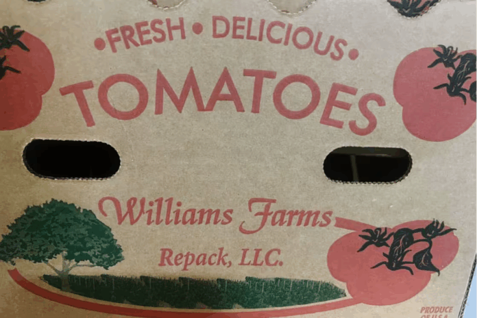 Việc thu hồi của Williams Farms Repack LLC ảnh hưởng đến 9 kích cỡ đóng gói cà chua được bán cho các nhà bán và phân phối ở các bang Georgia, Bắc Carolina và Nam Carolina trong khoảng thời gian từ ngày 23 đến 28 tháng 4.